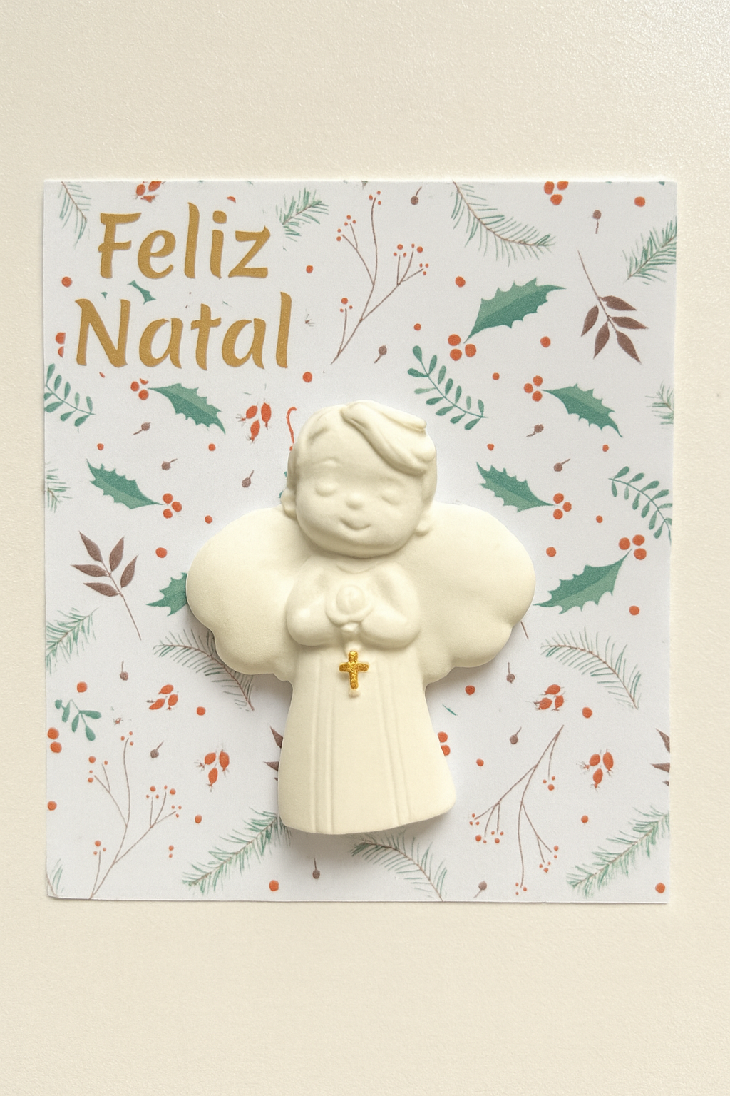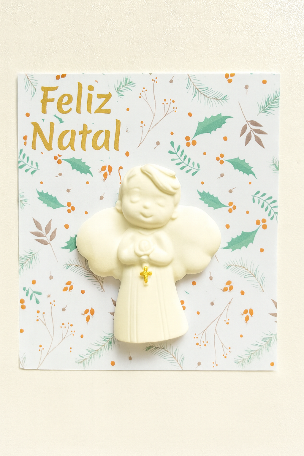 O anjinho da esperança simboliza fé, confiança e novos recomeços. Em gesso perfumado e pintado à mão, traz consigo a suavidade do aroma e a beleza dos detalhes, tornando o Natal ainda mais especial.