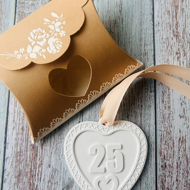 Celebre momentos marcantes com elegância e delicadeza! O coração simboliza os 25 anos de união, conquistas ou aniversários inesquecíveis. Perfeito Para: Bodas de Prata: Uma lembrança para os convidados. Aniversários Especiais: Uma gravação única para celebrar todos os momentos de 25 anos. Decoração: Ideal para compor ambientes com charme e sofisticação.