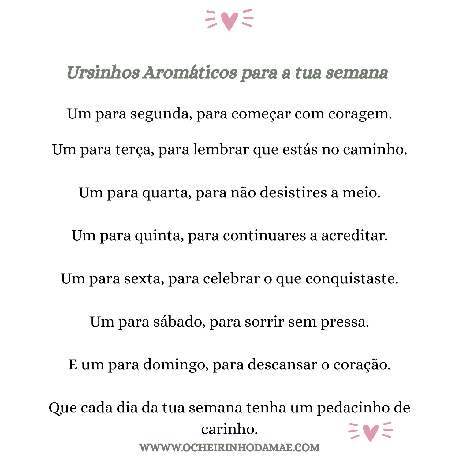 Que cada dia da semana tenha um pedacinho de carinho.